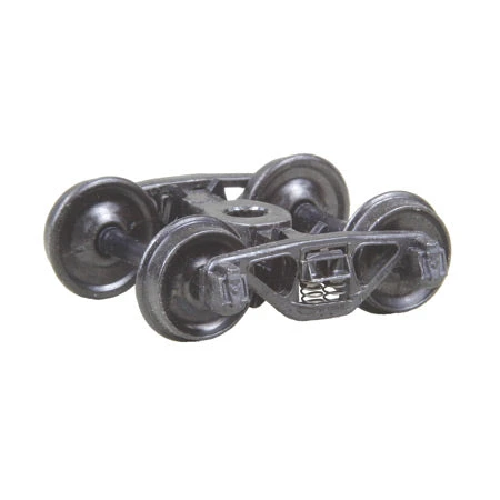 The A. S. Foundries® A-3 Ride Control® 50-ton freight truck was introduced in the 1940’s and is one of the forerunners of modern freight trucks. Features embodied into this design include a longer spring travel, no spring planks and constant friction control using friction castings in the bolster to dampen excessive lateral roll of the car. These design features allowed for a higher train speed with less danger of derailment than previous designs. ASF® sold over 140,000 sets by 1949. This truck is excellent for modeling the transition era up to 1994 when friction bearings were no longer allowed in interchange service.