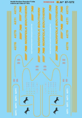 Microscale 87-1272 HO Scale Norfolk Southern Executive F Units A-B-B-A Decals