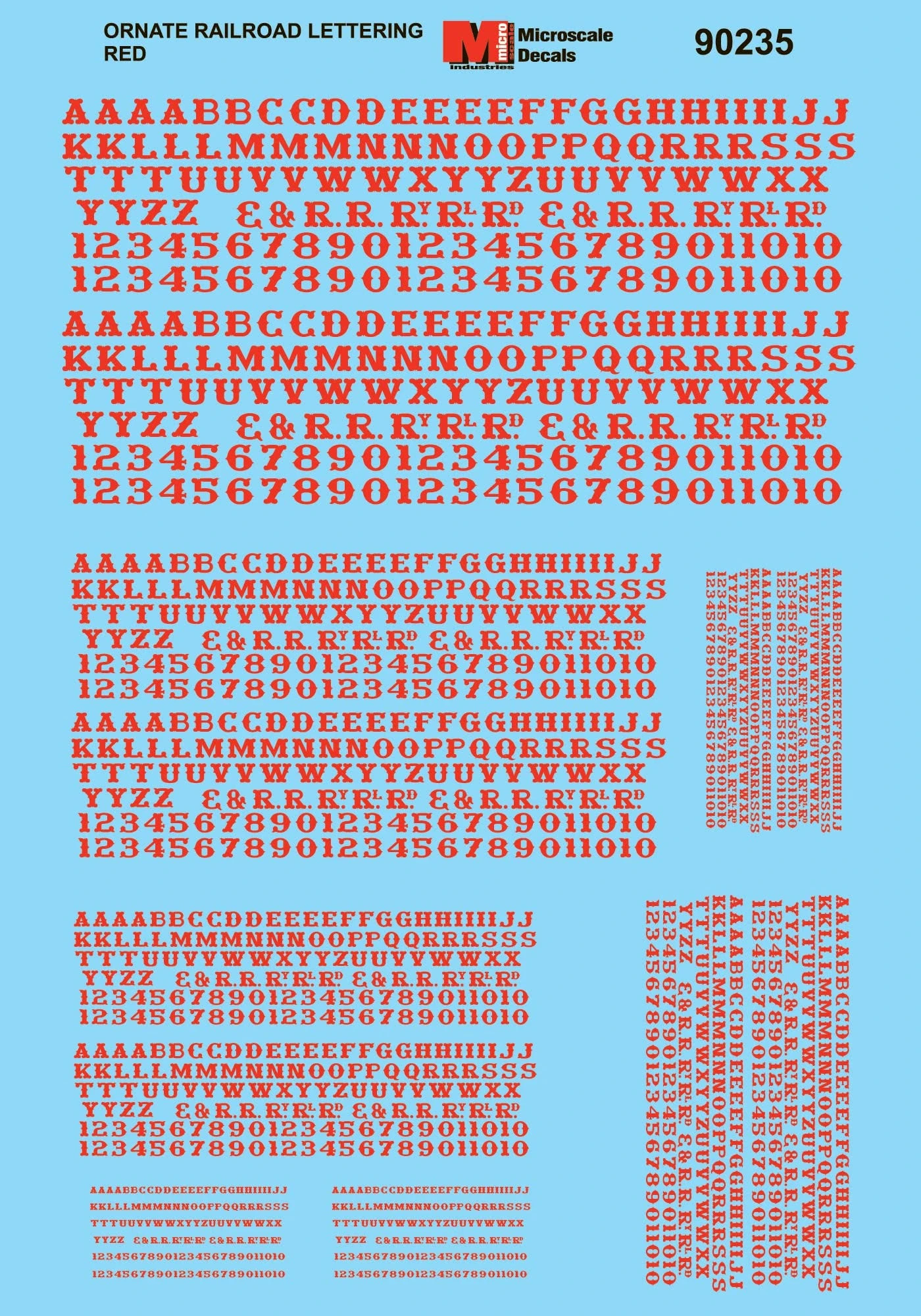 Microscale 90235 Red Alphabets & Numbers Ornate Railroad