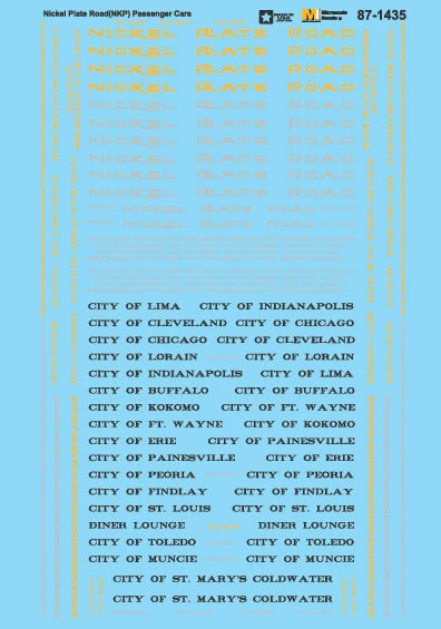 Microscale Decals 87-1435 HO Scale Nickel Plate Road NKP Passenger Cars