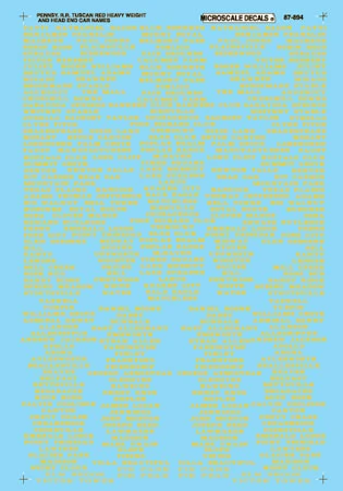 Microscale Decals 87-894 HO Scale Pennsylvania Heavyweight Passenger Car Names