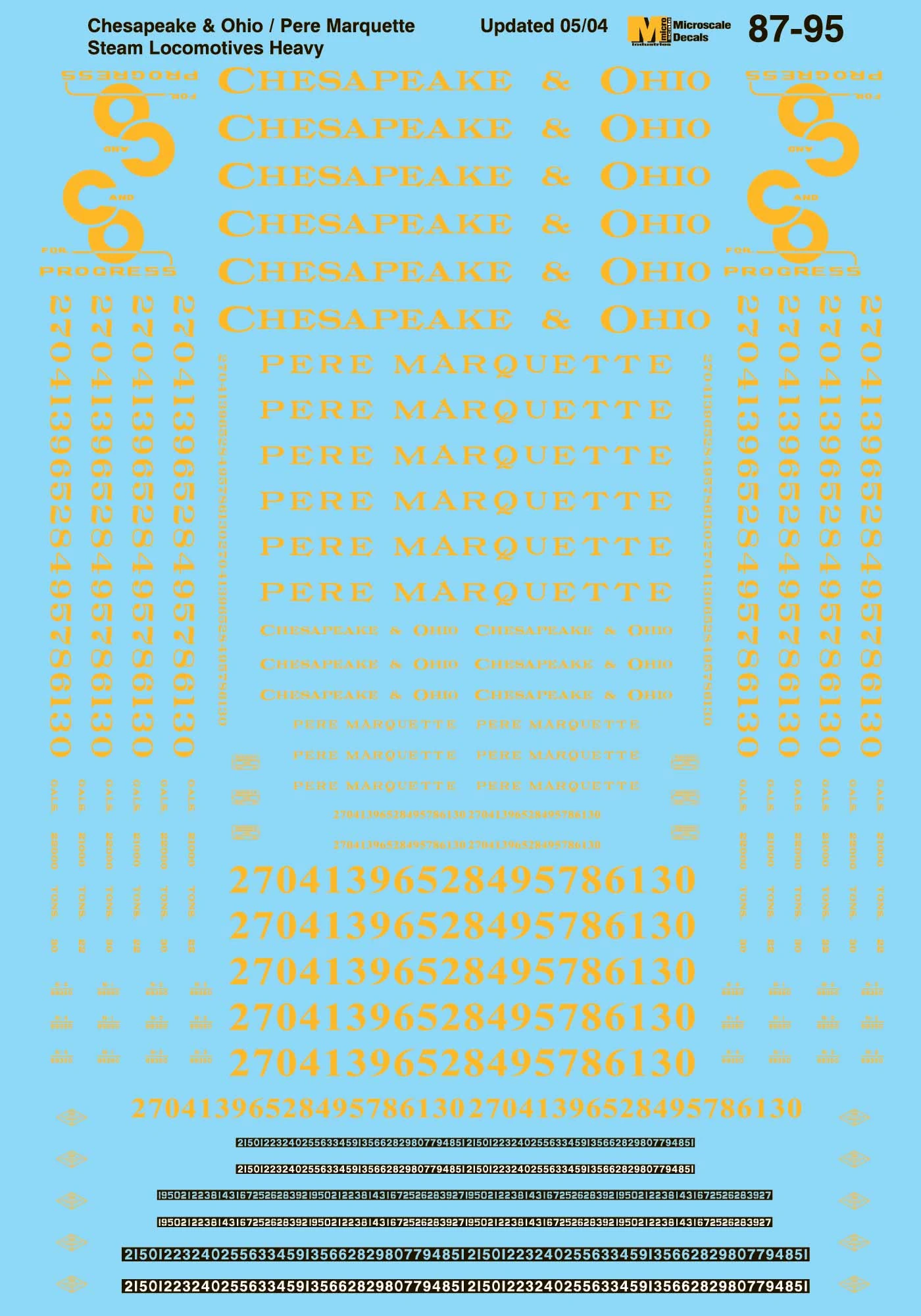 Microscale Decals 87-95 HO Scale Chesapeake & Ohio & Pere Marquette Steam Locomotives