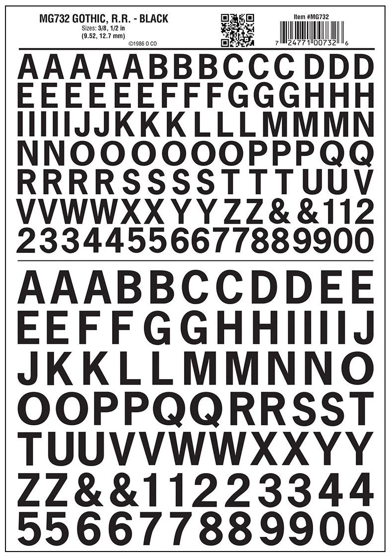 Letter sizes: 3/8 in and 1/2 in (0.95 and 1.27 cm)